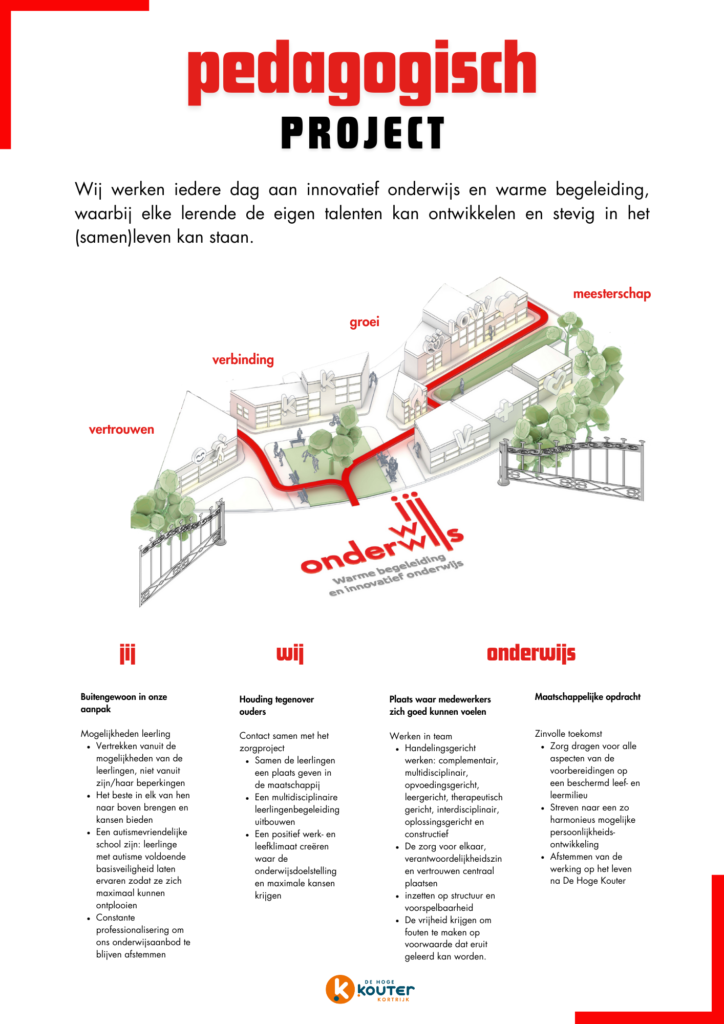 We willen een groeibevorderend klimaat creëren, gebaseerd op het geloof in de ontwikkelingsmogelijkheden van onze leerlingen.